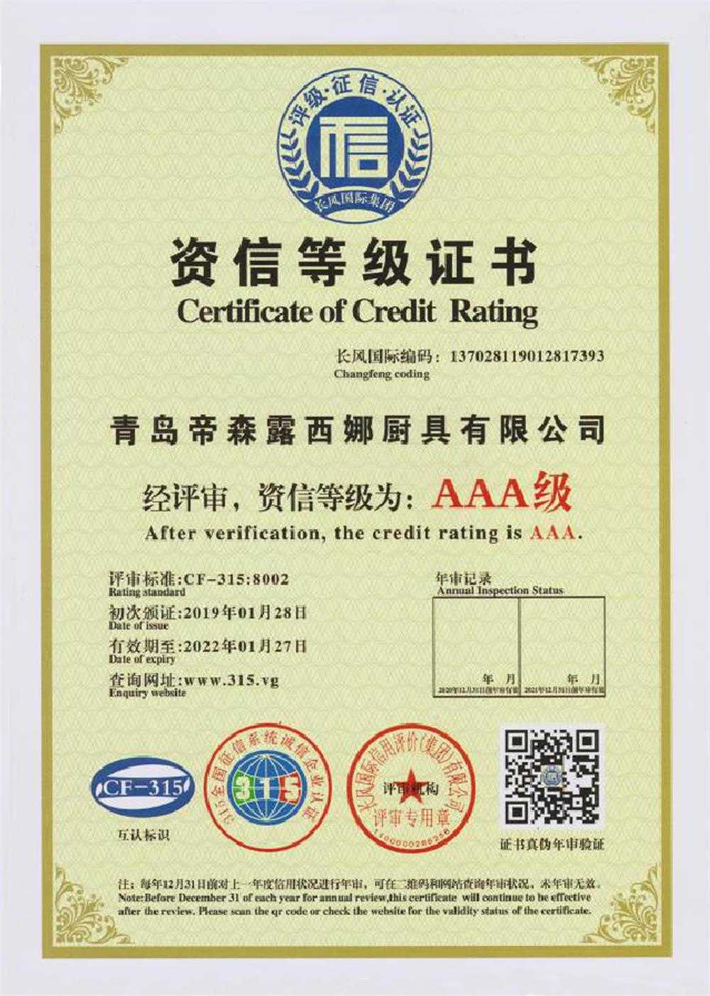 資信等級證書